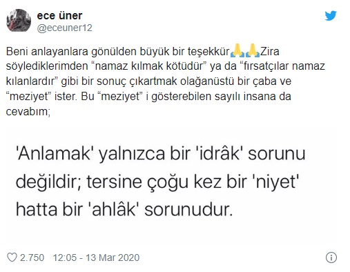 Bu sözleri sonrası sosyal medyada çok konuşulan ve tepki alan Üner, Twitter hesabından açıklamada bulundu. Üner, eleştirilere böyle cevap verdi.